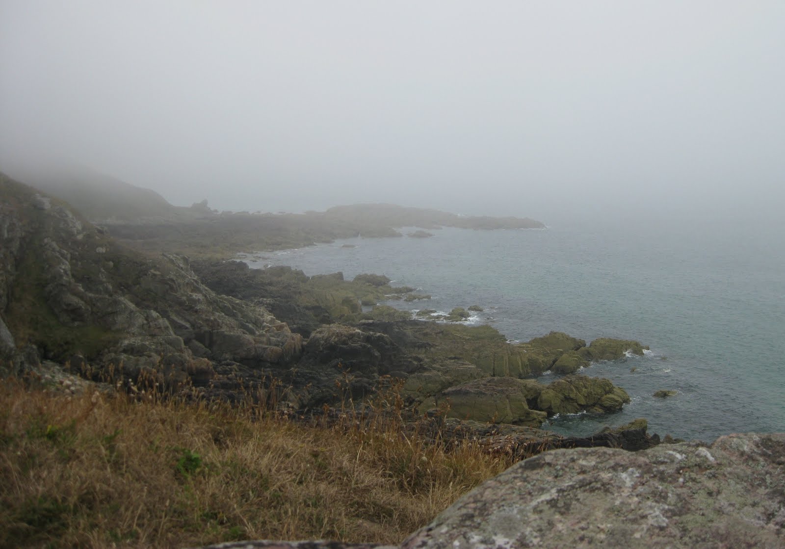 Later trekt de mist op en schijnt de zon op de kustlijn.